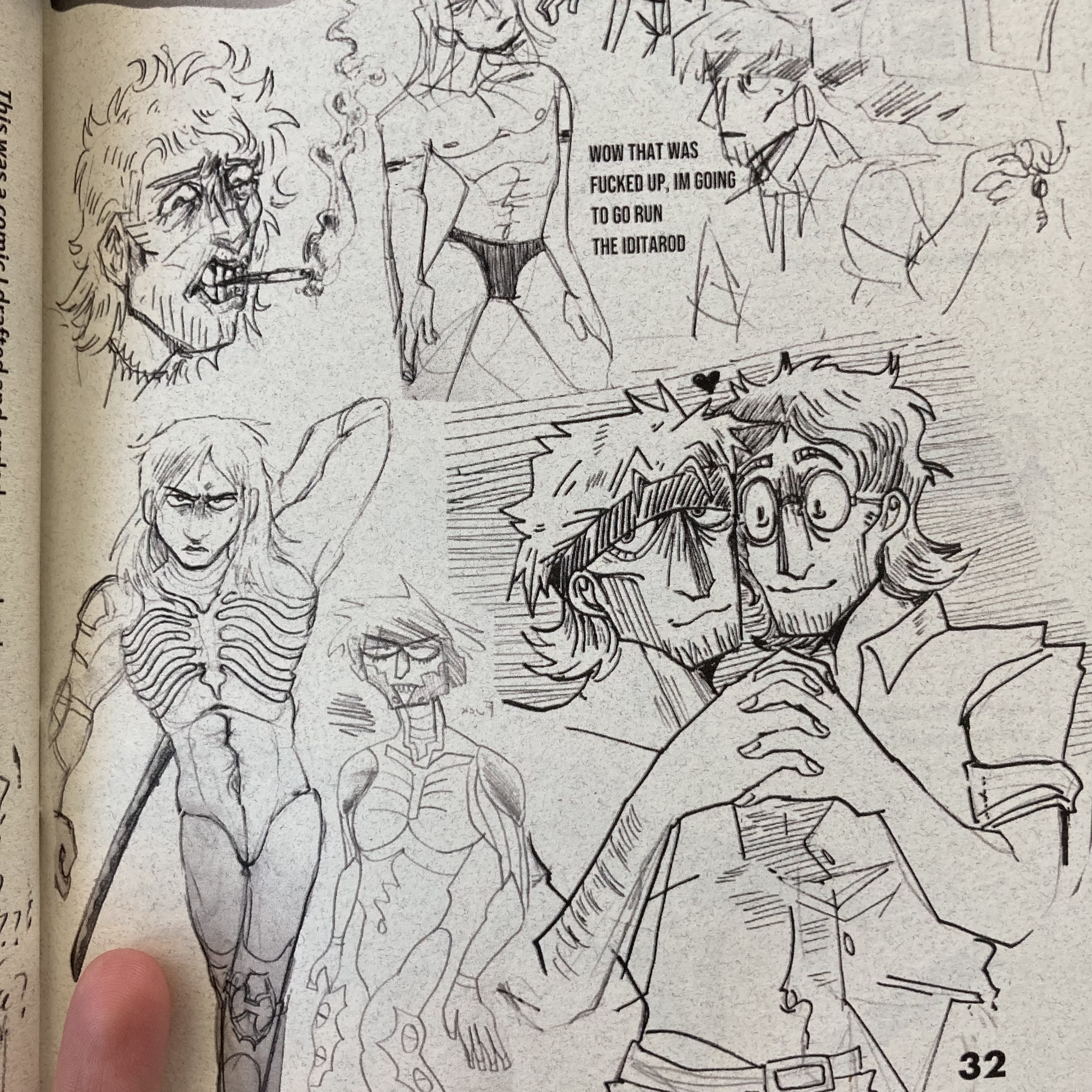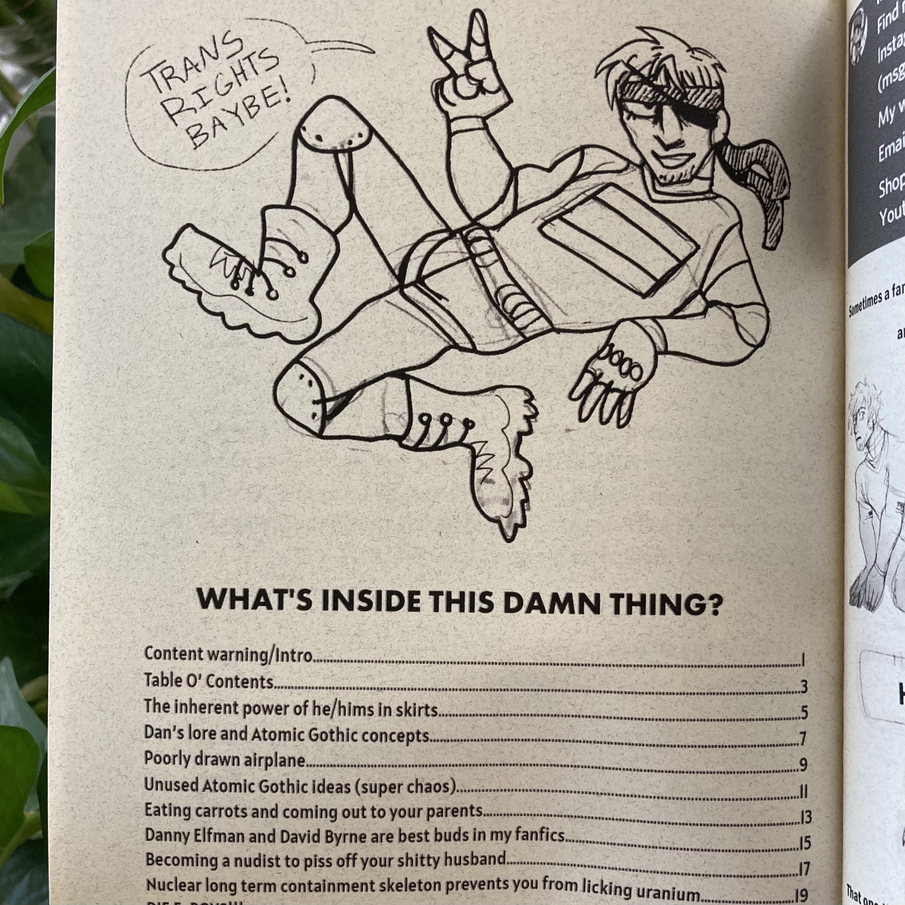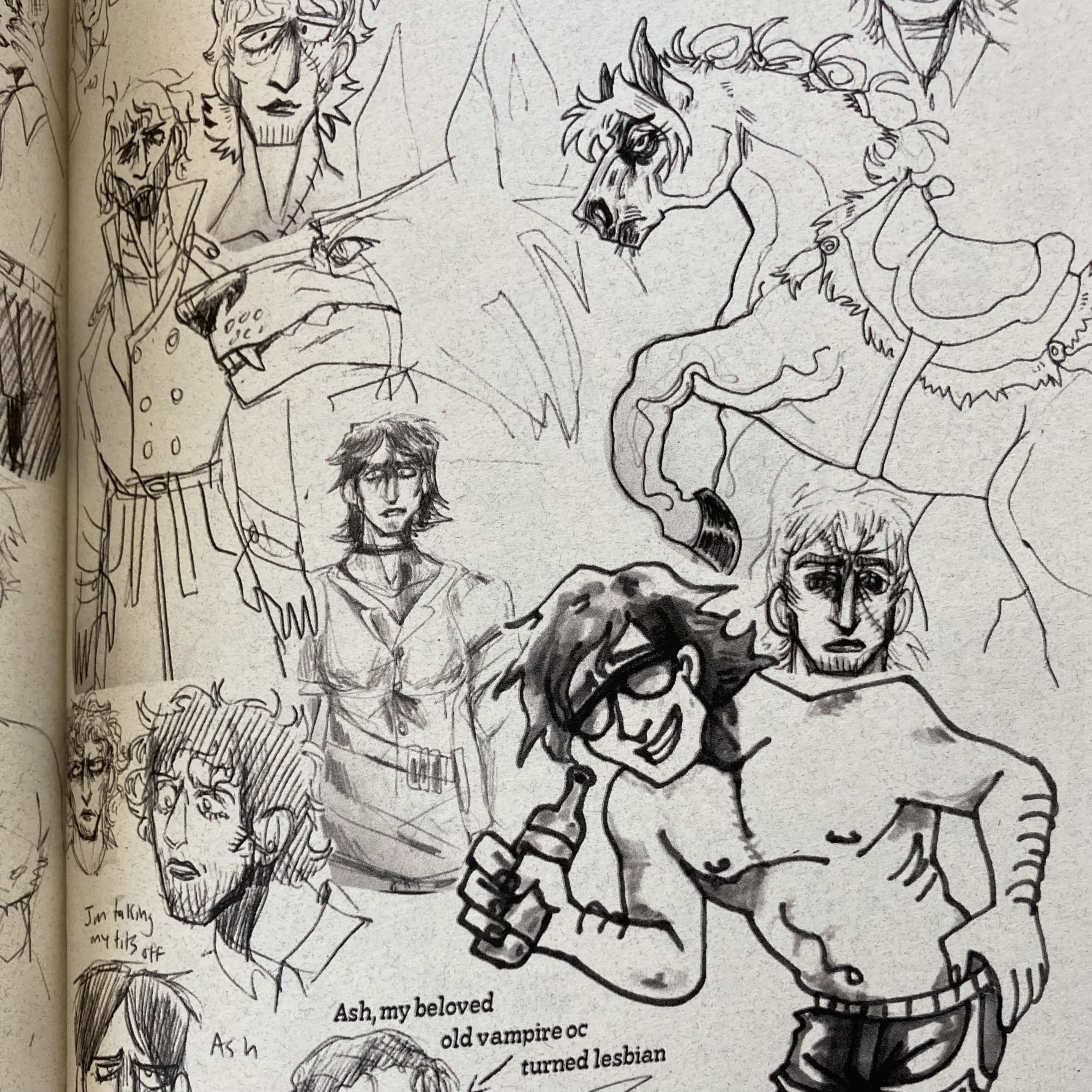 This 34 page zine includes all the sketches I made during quarantine 2020! Expect Metal Gear fanart, monsters, horses, shirtless men, lgbt vibes, original characters, comics, playlist, ramblings, and much more! This little book is my baby child, I worked incredibly hard making it :) !!
