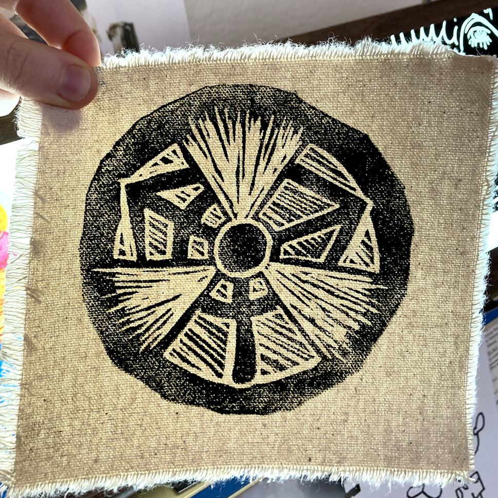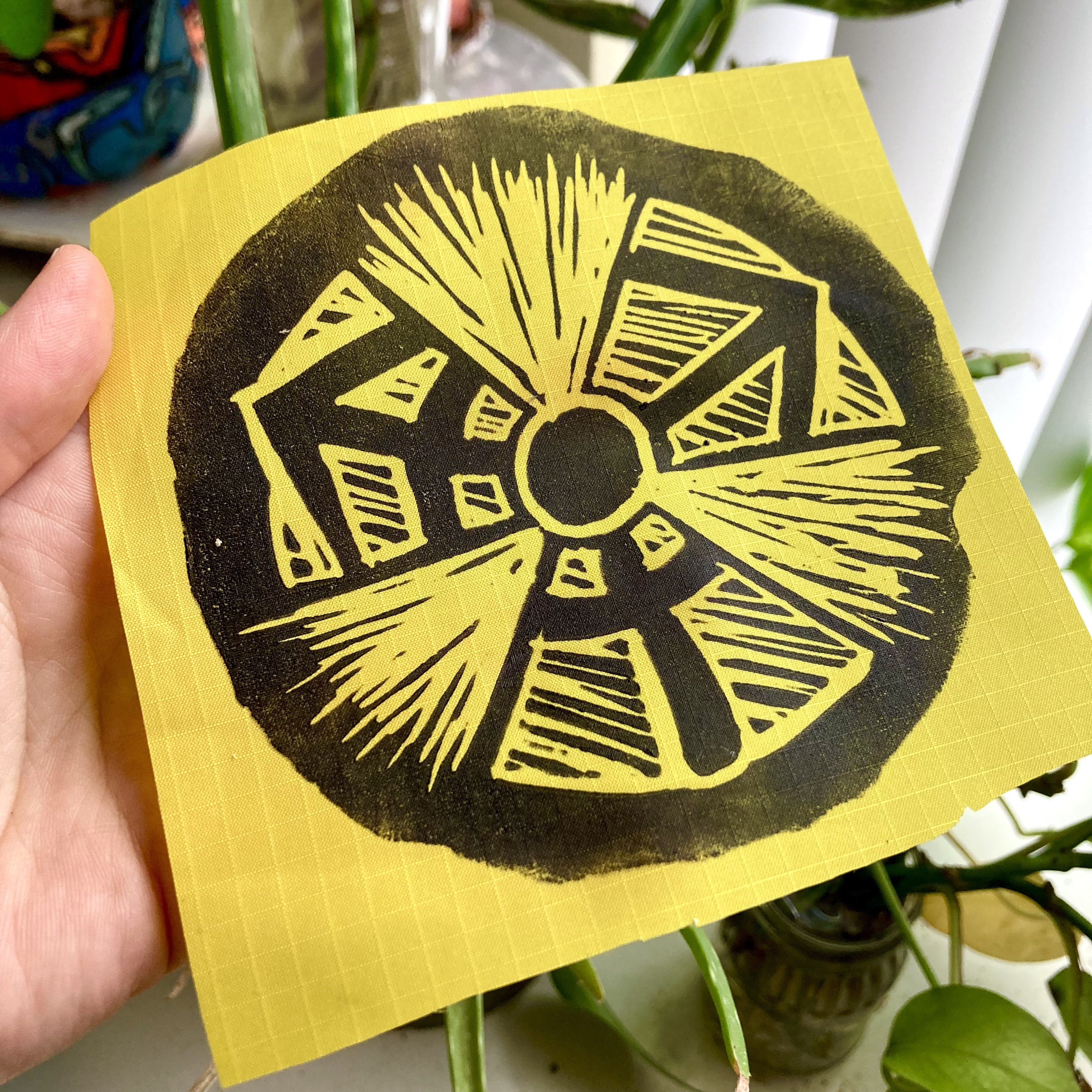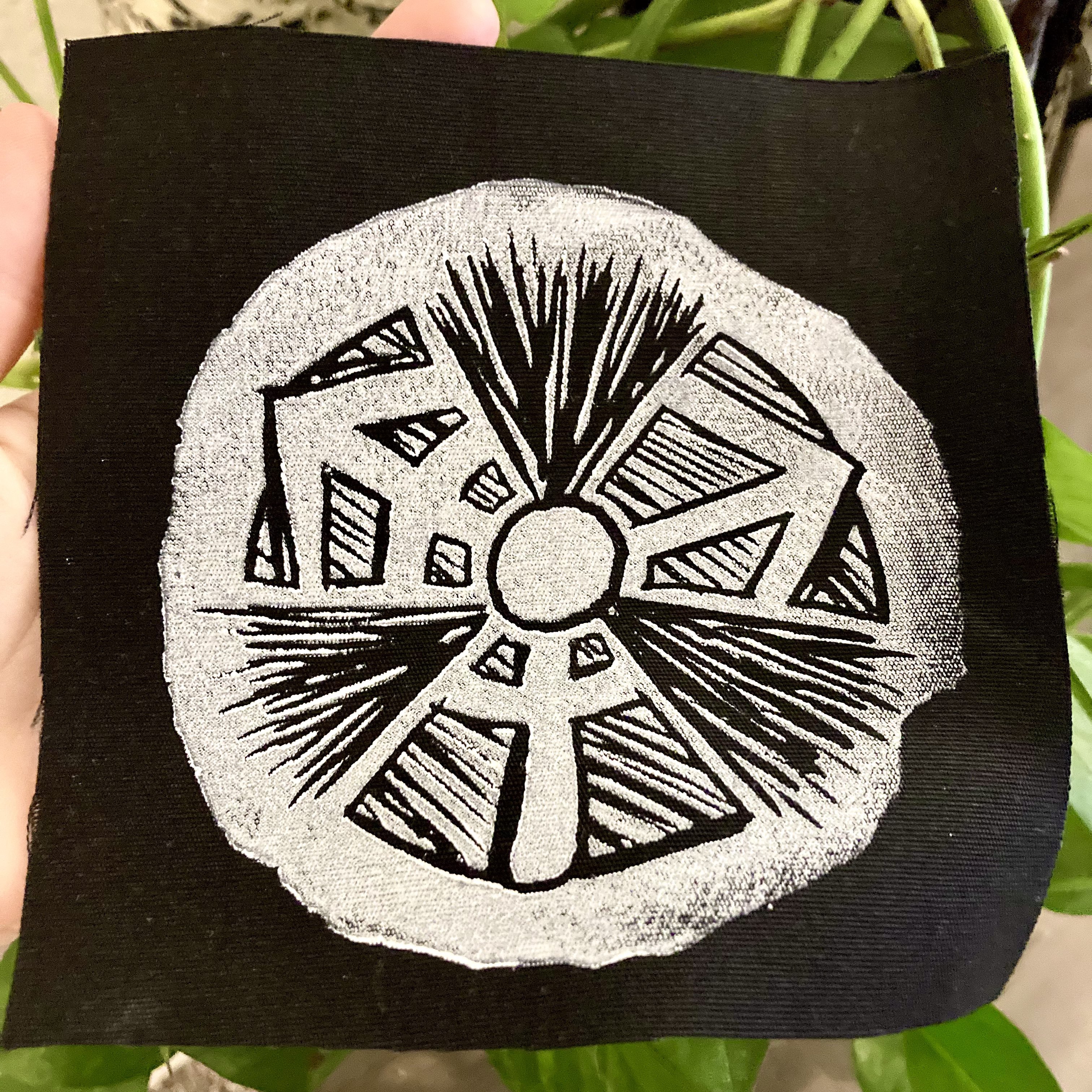 The best thing about being trans is the radioactivity. This patch is printed using a linoleum block on recycled fabric! Great for your LGBTQ+ themed punk jacket, pants, bags, etc. Approximately 6" x 6". Comes in black on canvas, black on white cotton fabric, white on black cotton fabric, or black on yellow nylon. These are great to sew, glue, or safety pin onto garments.